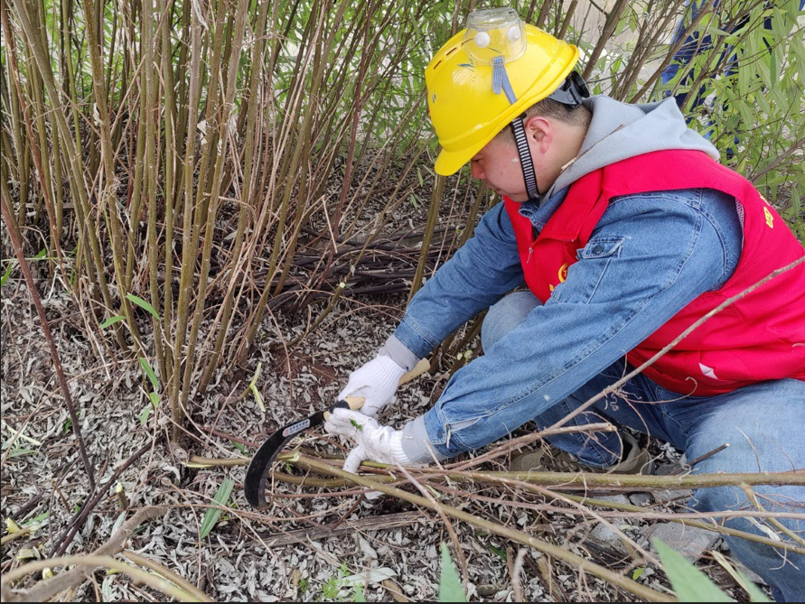 勞動中,大家擼起袖子,手拿鐮刀,對綠化帶里的雜草進行清理。雖然雜草叢生、根系牢固,但志愿者個個奮勇爭先、干勁十足,不到一會兒,綠化帶中的雜草、雜物被一一清理干凈,周圍環境煥然一新。