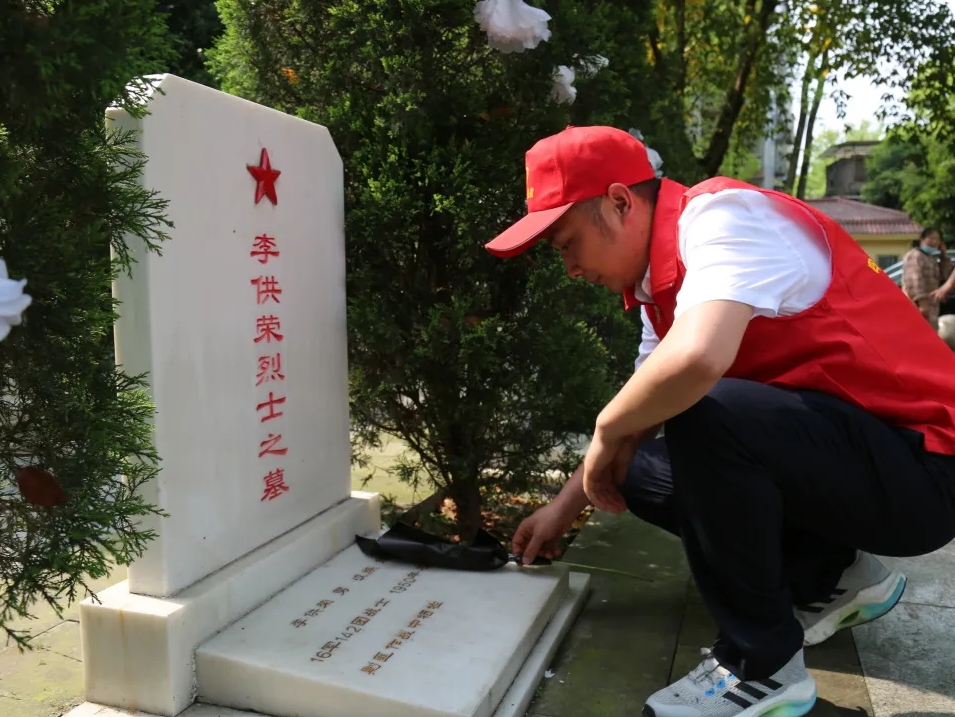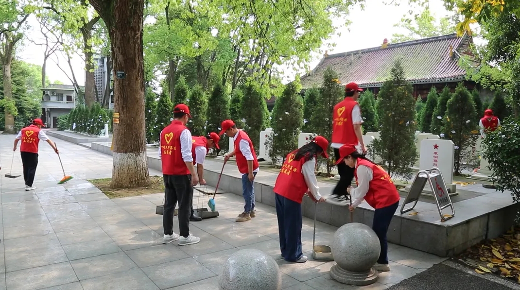 活動(dòng)最后,志愿者們還擦拭烈士墓碑,清掃樹木枯枝。經(jīng)過辛勤勞動(dòng),烈士陵園變得更顯整潔、肅穆。