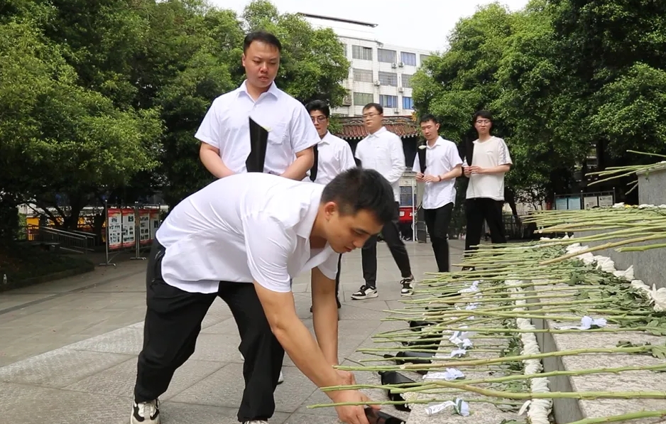 大家滿懷哀思列隊(duì)肅立,向革命先烈默哀致敬。隨后有序上前將鮮花擺放在烈士紀(jì)念碑前。