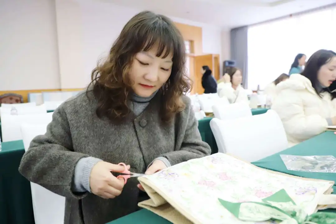 隨后,活動進入“巧手慧心·女工創藝”DIY手工制作環節。女職工們在帆布袋上盡情揮灑創意。她們或低頭思考,或相互交流,一個個色彩斑斕、獨具特色的手繪布袋在她們手中逐漸成形。女職工們的臉上洋溢著喜悅和自豪,更體現了對生活的熱愛和追求。